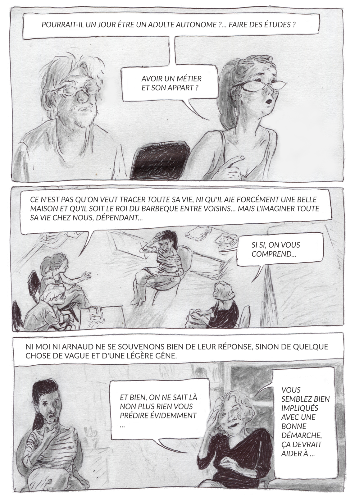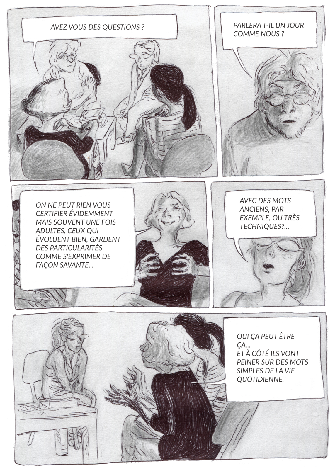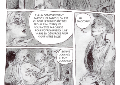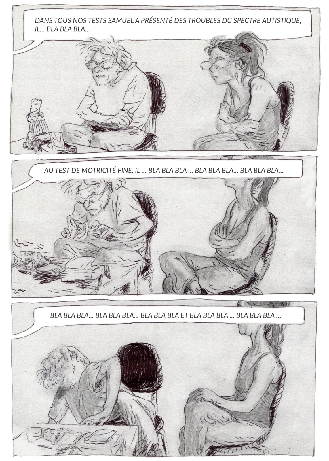 9. Bonjour, je viens de lire votre bd que je trouve formidable (j’ai eu l’info par le blog de Laurel) : c’est la 1ere fois que je poste un commentaire de ma vie !!! Je vous souhaite beaucoup de courage pour la suite de votre bd et beaucoup de pensées positives pour toute votre famille et vous même (Je suis maman de jumeaux et prof. au collège- j’ai un élève en cours dont on m’a également dit qu’il avait des troubles autistiques). A bientôt peut être