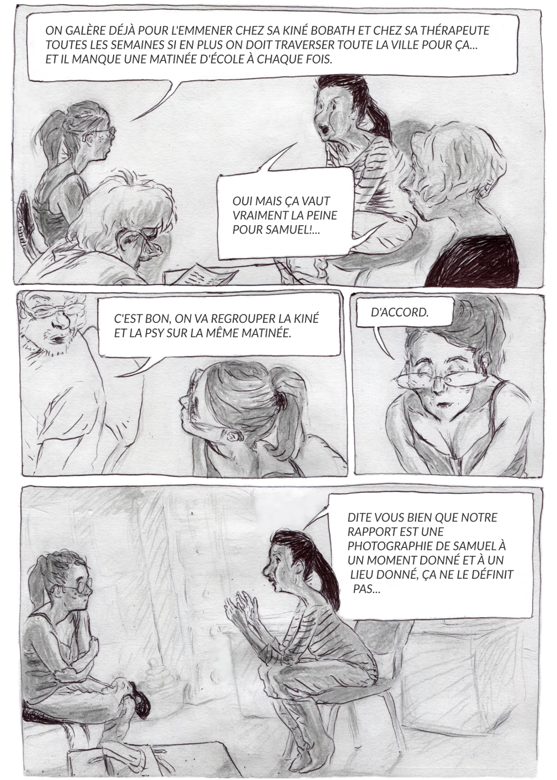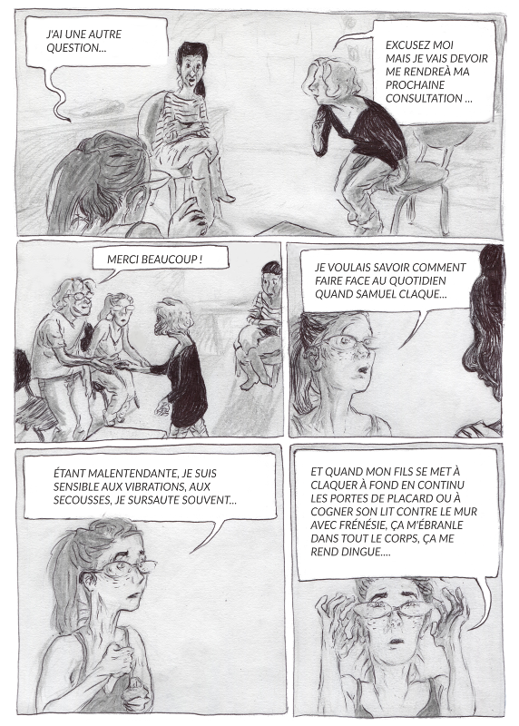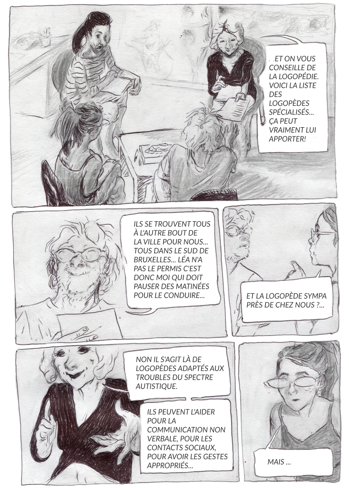 J’ai pensé à parler de cette bd à l’association Susa sur Bruxelles (pour les parents d’enfants diagnostiqués avec autisme), là encore je voulais d’abord avancer davantage sur ma bd et ne pas aller vers les gens avec un projet en pause. Et puis je reconnais que le démarchage n’a jamais été ma tasse de thé! Si je parviens au bout de cette histoire (déjà écrite) alors oui il me faudra me faire violence là dessus 🙂