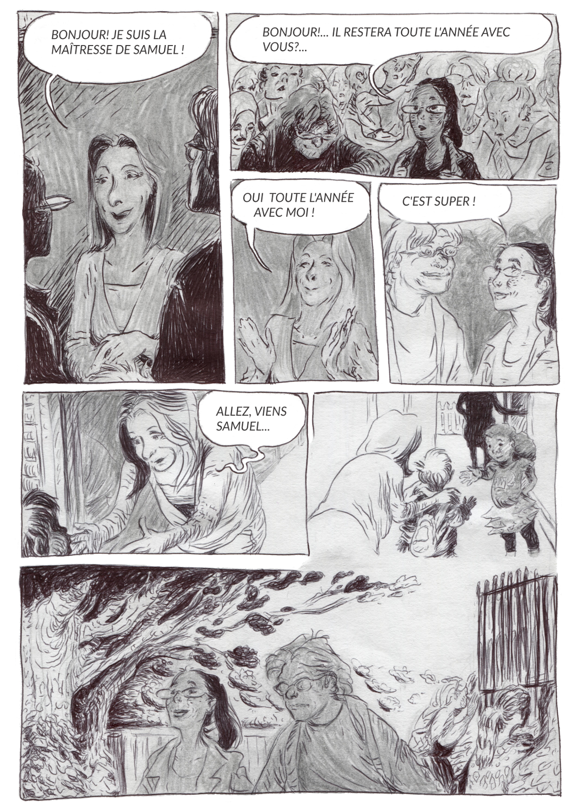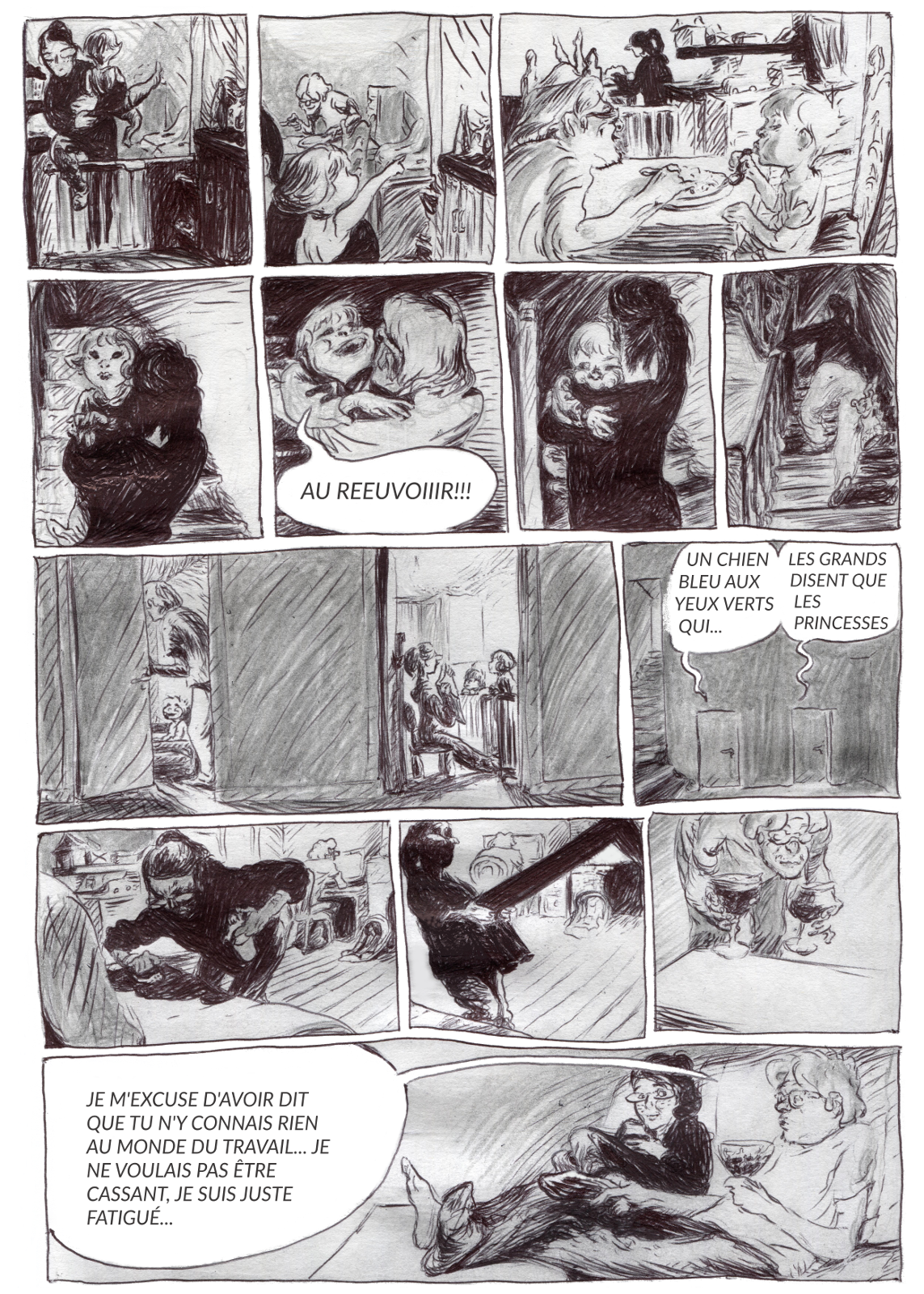 Et tu dessines évidemment toujours aussi bien, avec ton style, tu donnes tellement de mouvement à tes personnages, ça bouge, c’est expressif, ça se tord, c’est profond, puis aérien, c’est la vie !